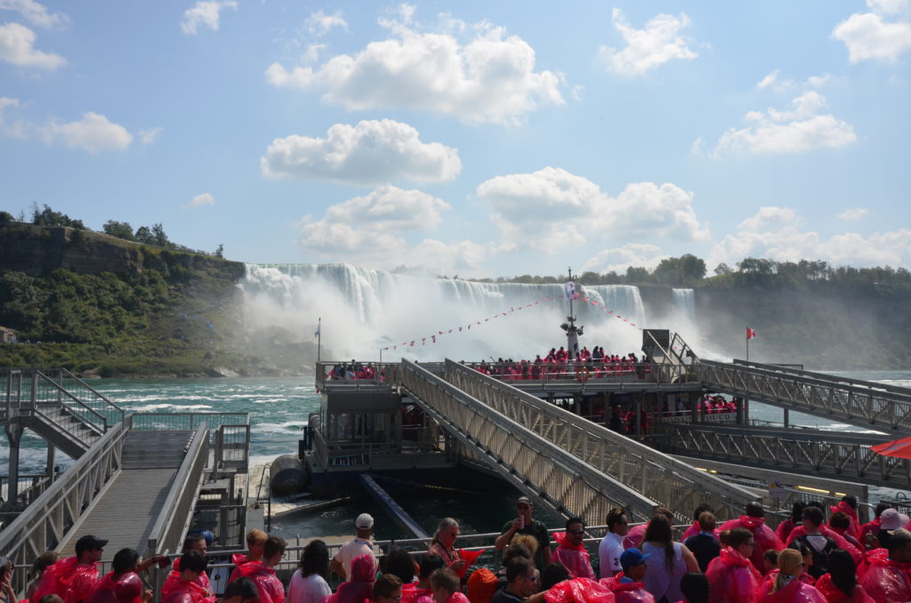 To jest atrakcja, z której musisz skorzystać! Wycieczka łódką pod same wodospady. Łódki turystyczne Hornblower odpływają zaraz obok wodospadów. Podróż trwa mniej więcej 20 minut i zostaniesz wyposażony w płaszcz przeciwdeszczowy. Łódki dopływają do samej ściany wodnej, więc uważaj na aparat i telefon, bo zostaniesz porządnie ochlapany! Jest to świetna zabawa i gwarantuję Ci, że będziesz zachwycony. Do tego cena takiego rejsu jest bardzo rozsądna, więc aż grzech nie skorzystać.