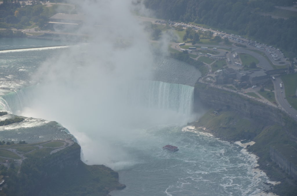 Pierwszą z atrakcji z jakiej skorzystałam był lot helikopterem nad samym Wodospadem Niagara. Takie loty organizowane są przez przewoźnika Niagara Helicopters Limited. Lądowisko znajduje się kilka kilometrów od wodospadu, więc musisz albo wziąć taksówkę, alb wybrać się na pieszo. Taki lot trwa 15 minut i będziesz mieć okazję zobaczyć całą okolicę z lotu ptaka. Jest to niesamowita atrakcja, którą polecam każdemu. Niestety minusem jest wysoka cena, przelot dla jednej osoby kosztuje bowiem C$ 130. Ale jak to mówią – wspomnienia są bezcenne 😉