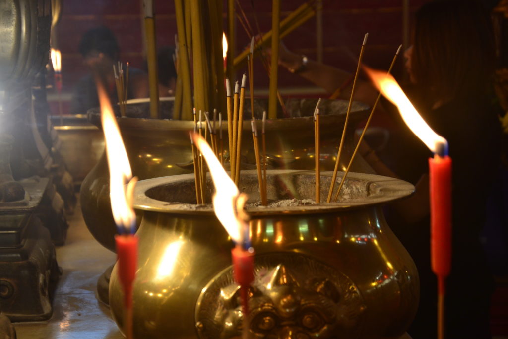 Jeszcze na chwilkę pozostajemy na wyspie Hongkong i nadal w dzielnicy Central. Pomiędzy sklepami i knajpkami na ruchliwej i głośnej ulicy Hollywood znajduje się oaza spokoju – świątynia Man Mo. Świątyń Man Mo w Hongkongu jest kilka, ale ta na ulicy Hollywood jest największa. Została ona wzniesiona w 1847 roku za panowania dynastii Qing. Świątynia ta dedykowana jest dwóm bogom. Pierwszy z nich – Man – to bóg literatury i jego atrybutem jest pióro. Drugi z nich to – Mo – bóg wojny, którego atrybutem jest miecz. Świątynia ma bardzo charakterystyczny klimat, obwieszona jest bowiem stożkowymi kadzidłami modlitewnymi i kolorem dominującym jest czerwony. Każdy może wejść do środka i zdjęcia także są dozwolone.