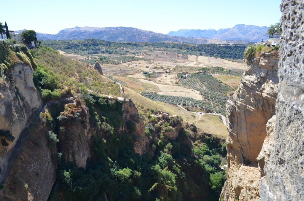 Ronda była moim największym zaskoczeniem podczas podróży po Andaluzji. Nie spodziewałam się, aż tak fantastycznego krajobrazu. Ronda to niewielkie, ponad 30-tysięczne miasteczko położone po obu stronach wąwozu rzeki Guadalevín. Właśnie ten wąwóz jest największą atrakcją miasta. Ronda podzielona jest na dwie części. Jedna z nich jest częścią arabską La Ciudad, a druga chrześcijańską El Mercadillo powstałą po rekonkwiście. Obie dzielnice łączy monumentalny most Puente Nuevo. Most ma wysokość 98 m i długość 66 m. Po obu stronach wąwozu El Tajo znajdują się Casas Colgadas, czyli kamienice przylegające bezpośrednio do krawędzi wąwozu. To właśnie Casas Colgadas oraz Puente Nueovo tworzą niesamowitą panoramę Rondy.