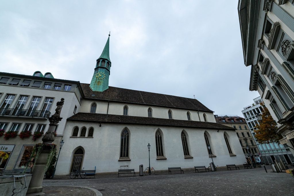 Tuż obok Augustinergasse znajduje się zabytkowy budynek kościoła – Augustinerkirche. Kościół ten wzniesiono w 1270 roku i niegdyś był to jeden z 5 najważniejszych kościołów w Zurychu. W XVI wieku w czasie reformacji w budynku kościoła zaczęto prowadzić fabrykę wyrobu monet. Dopiero w 1841 roku fabrykę zamknięto i budynek odzyskał swoje oryginalne przeznaczenie.