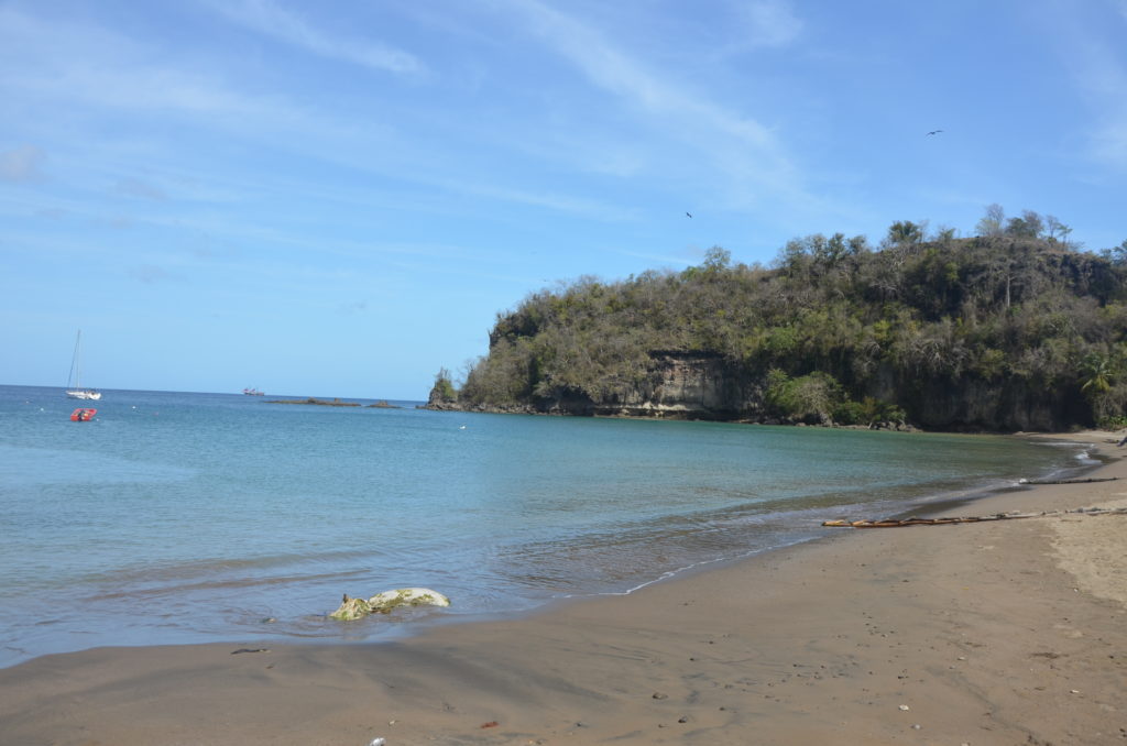 Plantacja była naszym ostatnim przystankiem na lądzie. Po kilku minutach dotarliśmy do portu, gdzie czekał już na nas katamaran. Podróż katamaranem trawała ok 2 godziny. Przez cały czas podziwialiśmy nieziemskie widoki. Przede wszystkim mogliśmy zobaczyś Pitony z drugiej strony, które prezentowały się naprawdę niesamowicie. Zatrzymaliśmy się także na bardzo małej plaży, której niestety nazwy nie pamiętam, gdzie mogliśmy chwilkę popływać. Jak to na wyspie wulkanicznej bywa, plaża była czarna a woda trochę mętna, ale i tak udało nam się zobaczyć kilka ryb 🙂 Podczas rejsu wpłyneliśmy także do zatoki Marigot, która uznawana jest za najpiękniejszą zatokę na Karaibach. Przyznam, że nie rozumiem dlaczego, bo zatoka jest przeciętna i naprawdę nasze europejskie zatoki w Grecji czy Włoszech są zdecydowanie lepsze!